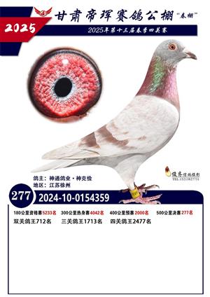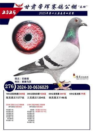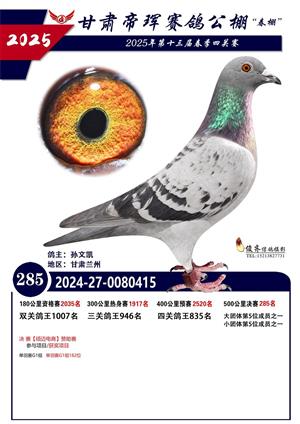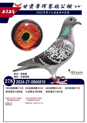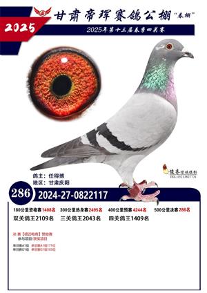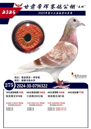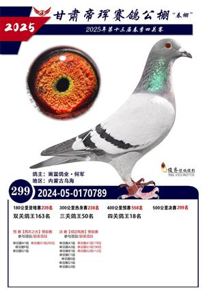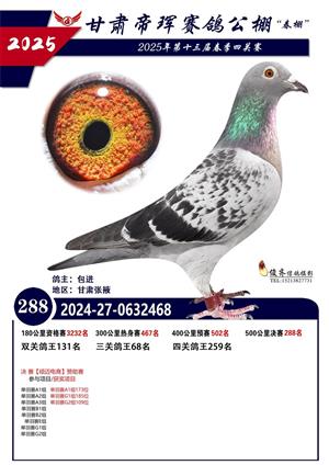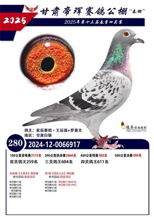 甘肃帝珲(春):2025年春季四关赛决赛获奖鸽照片