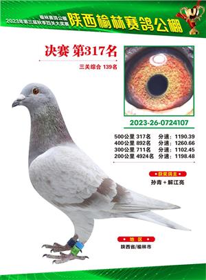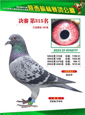 榆林赛鸽公棚2023年决赛获奖鸽欣赏(1-600名)