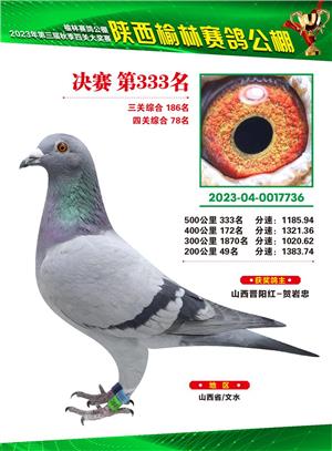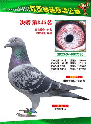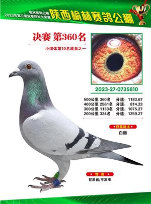 榆林赛鸽公棚2023年决赛获奖鸽欣赏(1-600名)