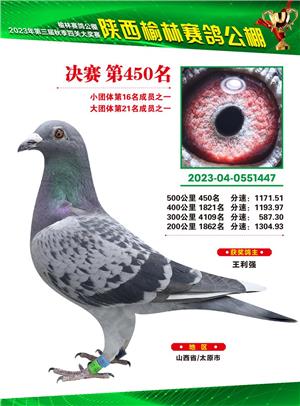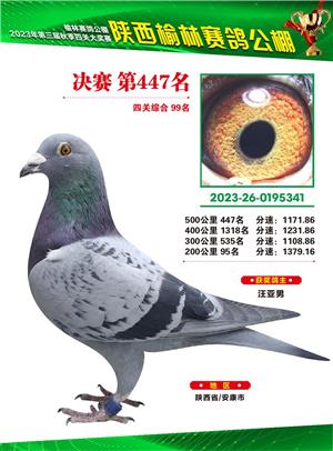 榆林赛鸽公棚2023年决赛获奖鸽欣赏(1-600名)