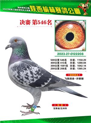 榆林赛鸽公棚2023年决赛获奖鸽欣赏(1-600名)