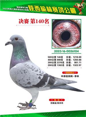 榆林赛鸽公棚2023年决赛获奖鸽欣赏(1-600名)