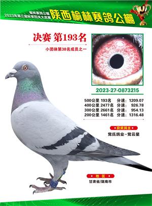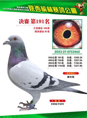 榆林赛鸽公棚2023年决赛获奖鸽欣赏(1-600名)