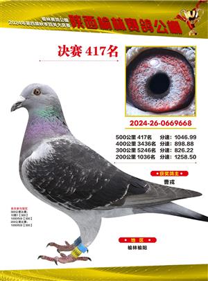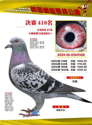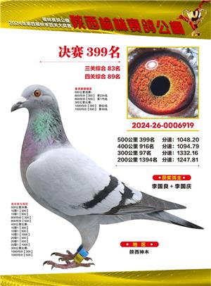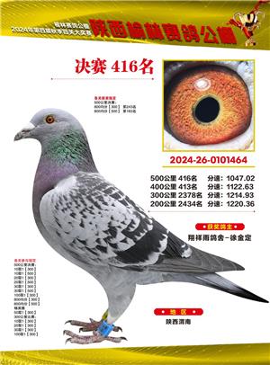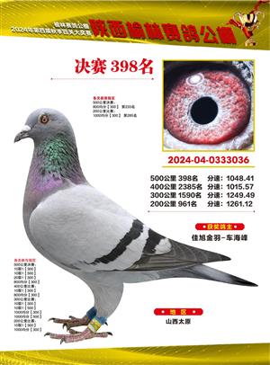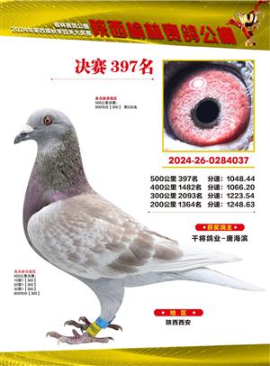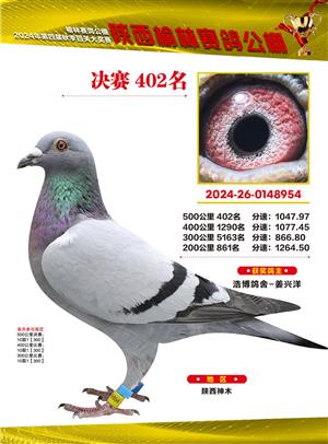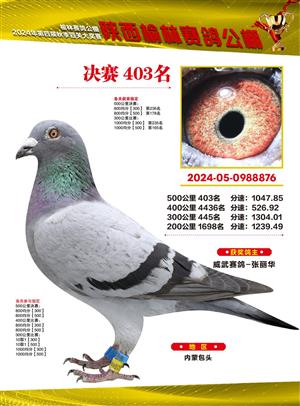 陕西榆林赛鸽公棚2024年决赛获奖鸽欣赏(1-500名)