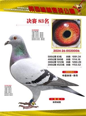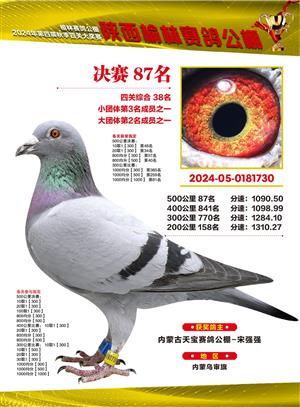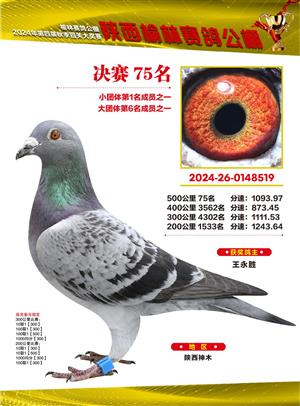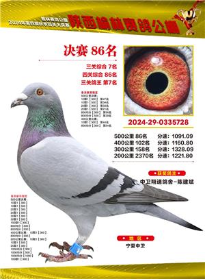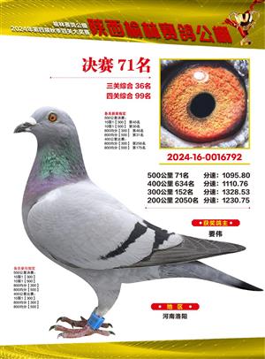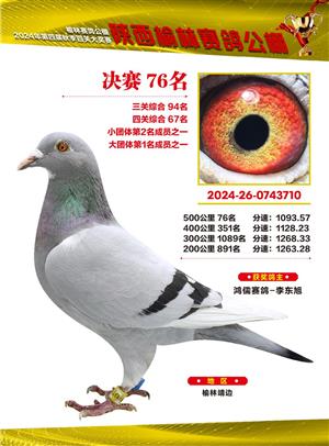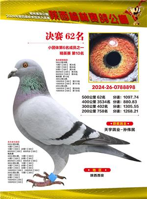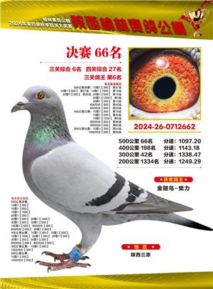 陕西榆林赛鸽公棚2024年决赛获奖鸽欣赏(1-500名)