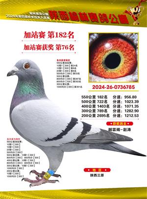 陕西榆林赛鸽公棚2024年加站赛获奖鸽欣赏(1-215名)