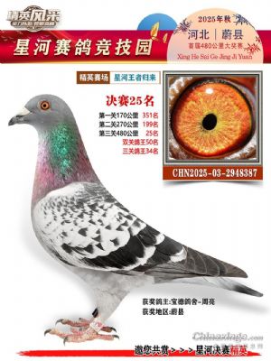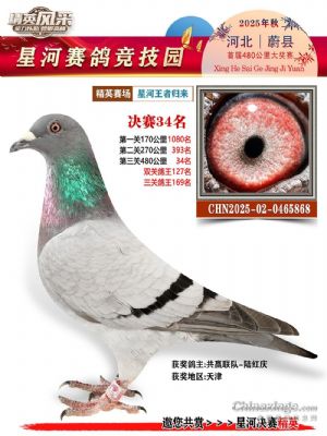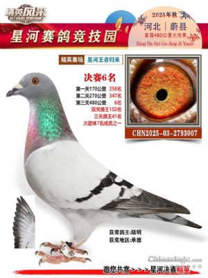 星河赛鸽竞技园2025年秋季获奖鸽照片赏析