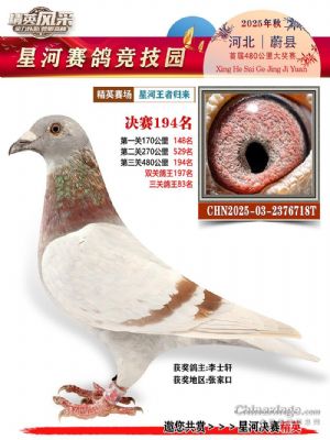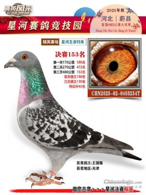 星河赛鸽竞技园2025年秋季获奖鸽照片赏析