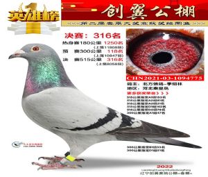 辽宁创翼公棚2022年第二届大赛1-600名获奖鸽照片