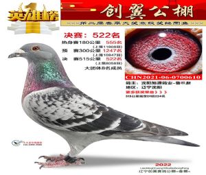 辽宁创翼公棚2022年第二届大赛1-600名获奖鸽照片