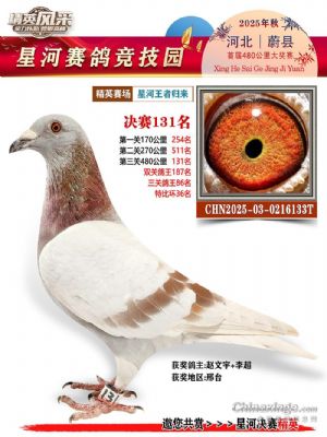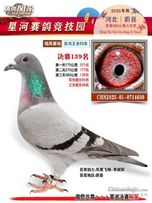 星河赛鸽竞技园2025年秋季获奖鸽照片赏析