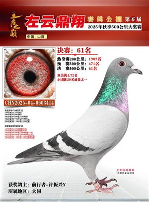 左云鼎翔公棚2025年秋决赛获奖鸽照片