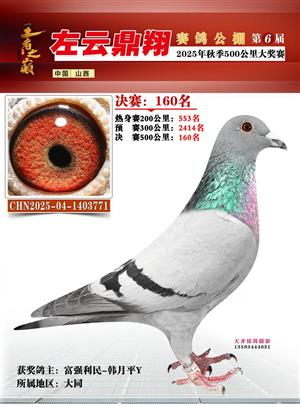 左云鼎翔公棚2025年秋决赛获奖鸽照片