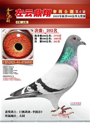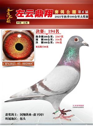 左云鼎翔公棚2025年秋决赛获奖鸽照片