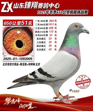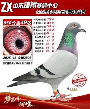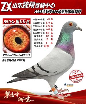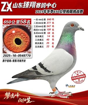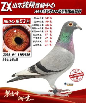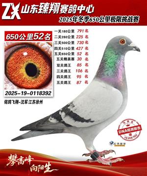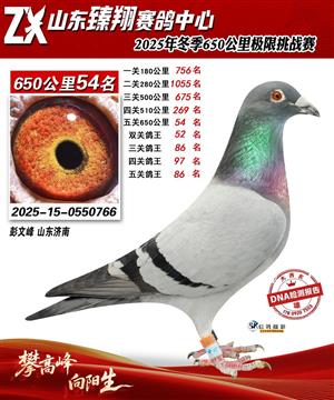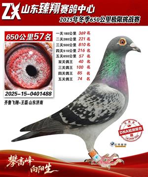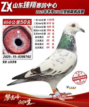 山东臻翔赛鸽中心2025年650公里加站赛获奖鸽图片