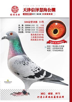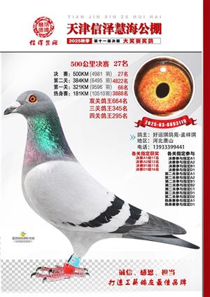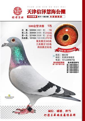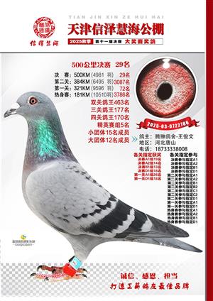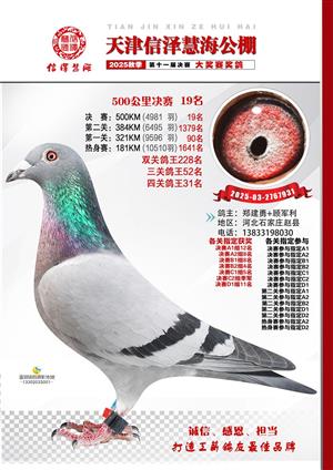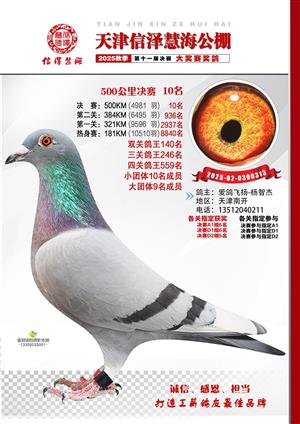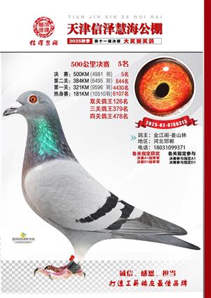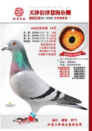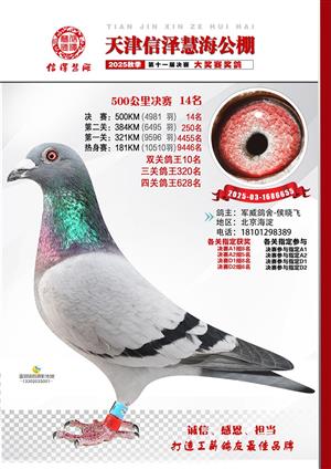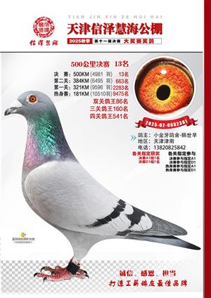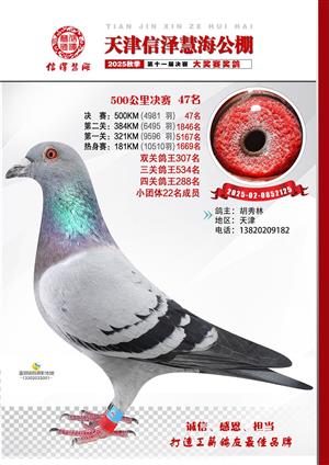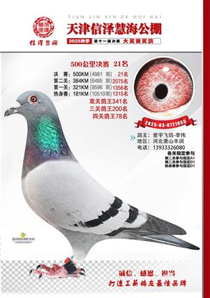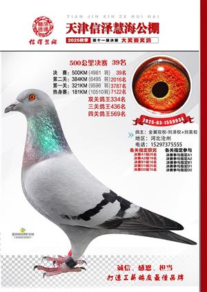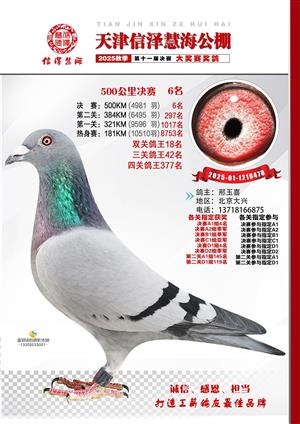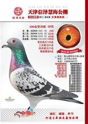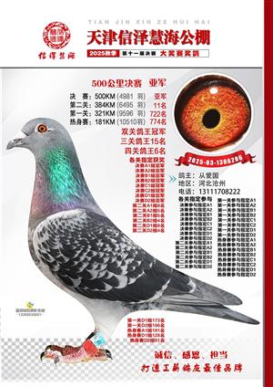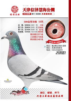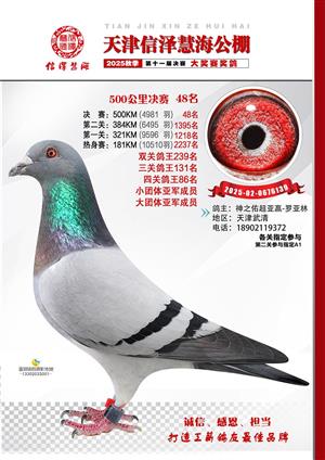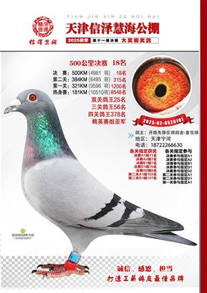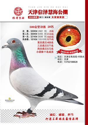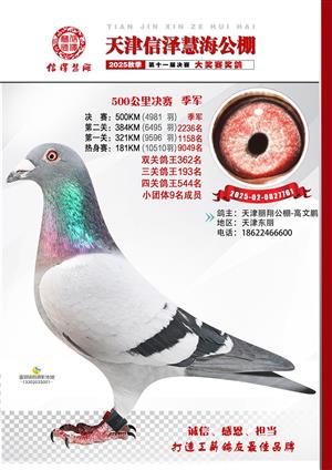 天津信泽慧海公棚2025年决赛前700名获奖鸽照片
