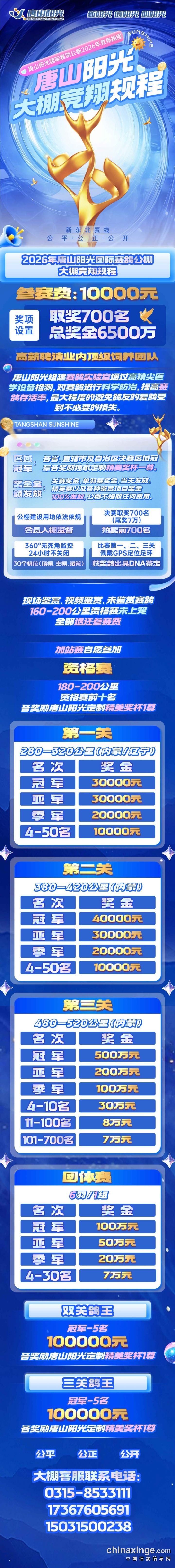 2026年唐山阳光国际赛鸽公棚竞赛规程(简章)