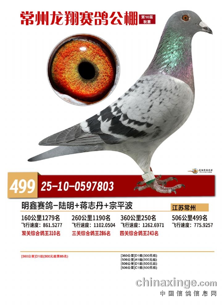 常州龙翔:2025年决赛获奖鸽靓照 496-500名