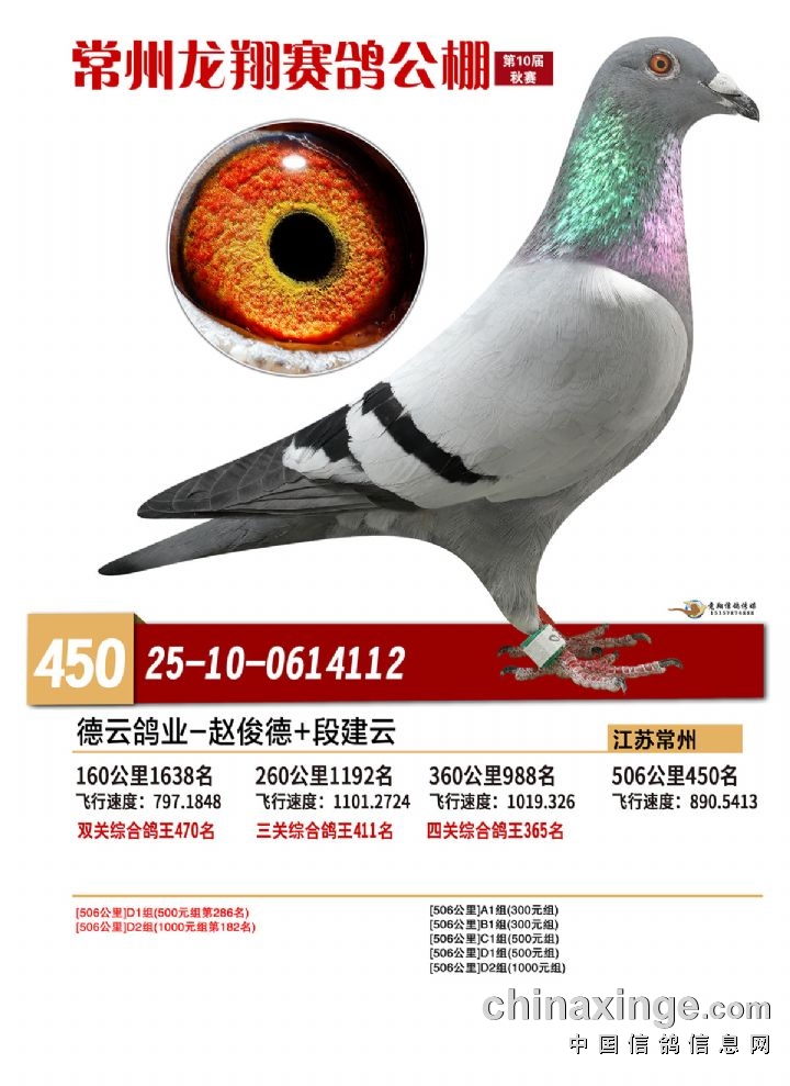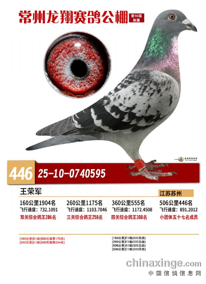 常州龙翔:2025年决赛获奖鸽靓照 446-450名