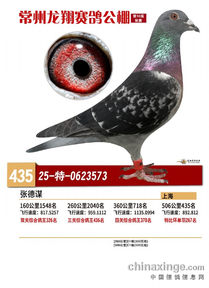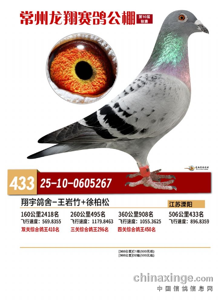 常州龙翔:2025年决赛获奖鸽靓照 431-435名