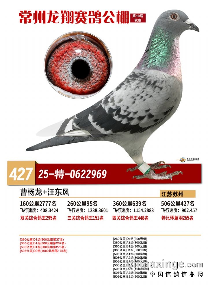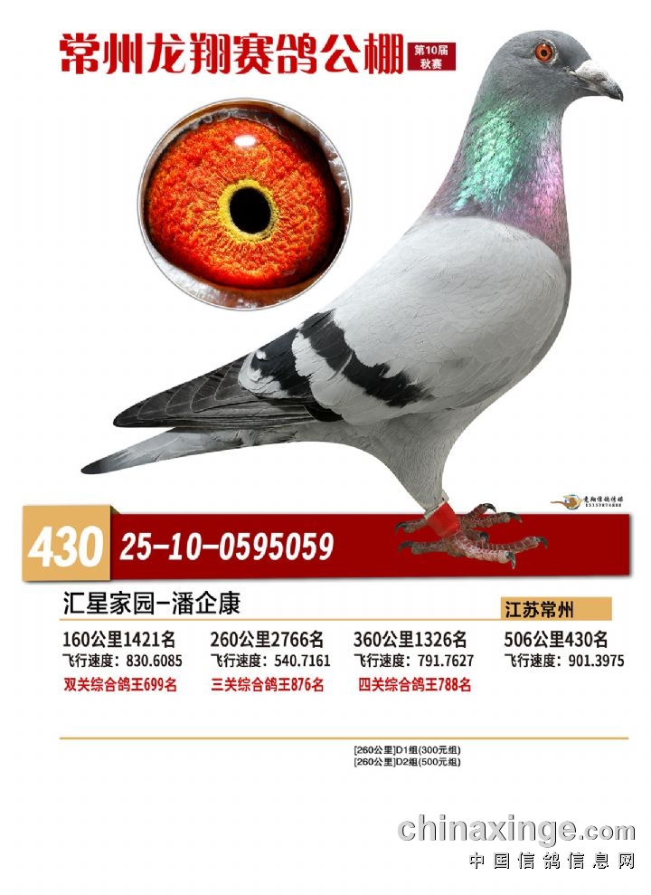 常州龙翔:2025年决赛获奖鸽靓照 426-430名