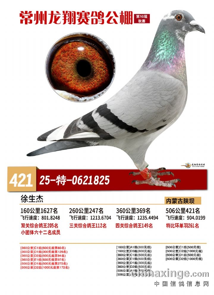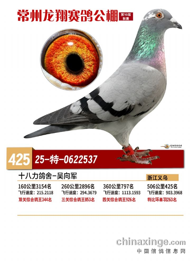 常州龙翔:2025年决赛获奖鸽靓照 421-425名