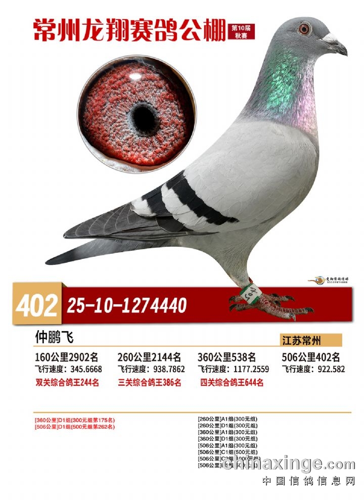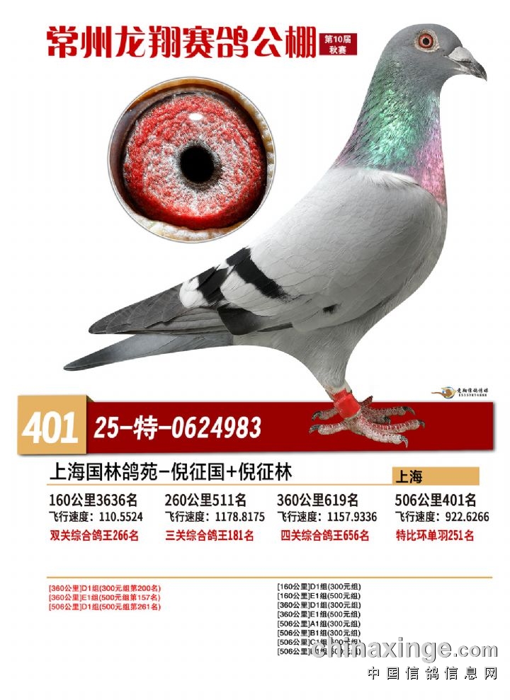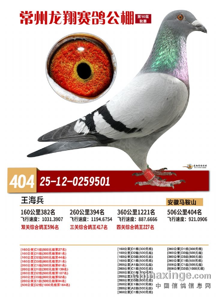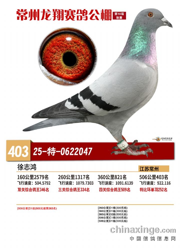 常州龙翔:2025年决赛获奖鸽靓照 401-405名