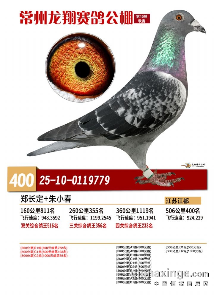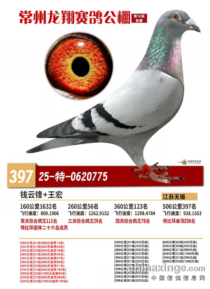 常州龙翔:2025年决赛获奖鸽靓照 396-400名