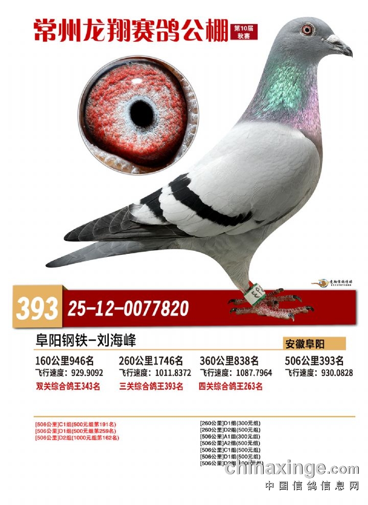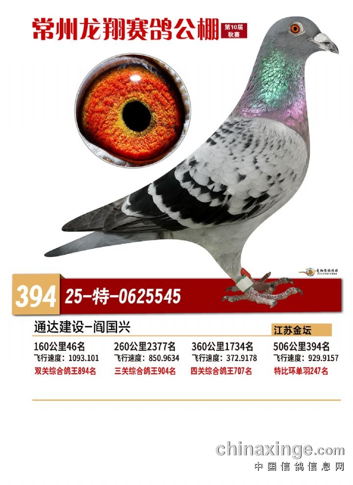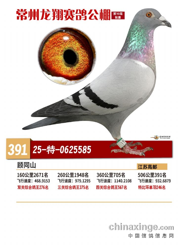 常州龙翔:2025年决赛获奖鸽靓照 391-395名
