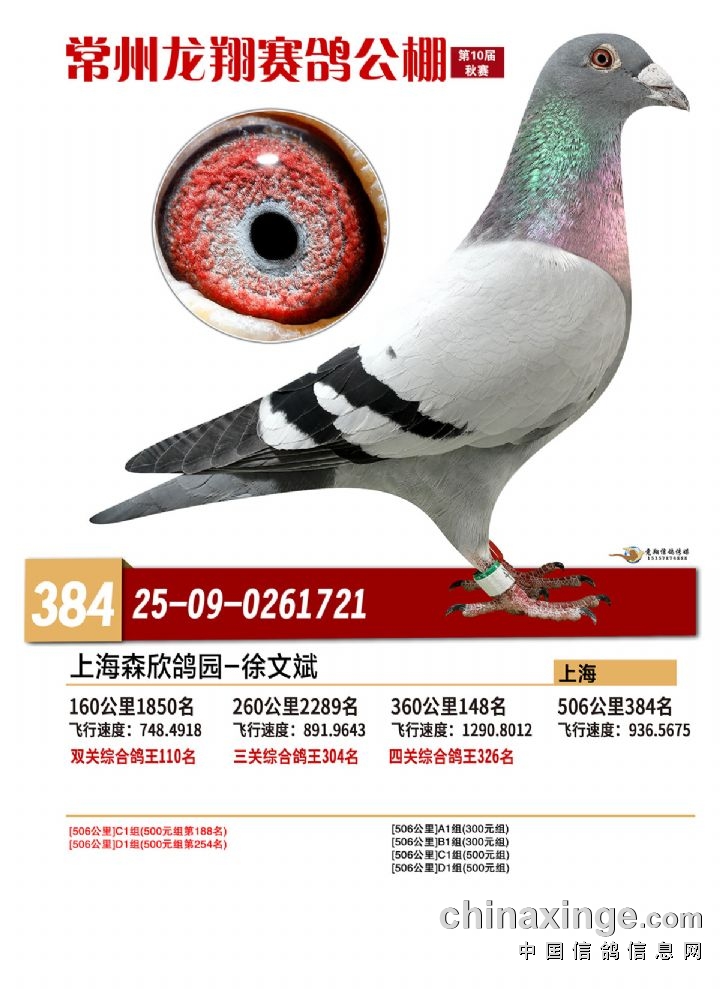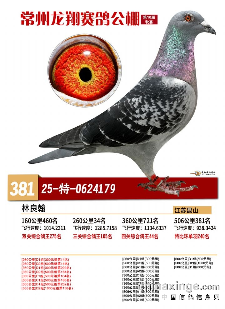 常州龙翔:2025年决赛获奖鸽靓照 381-385名
