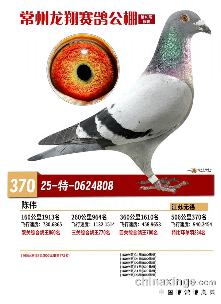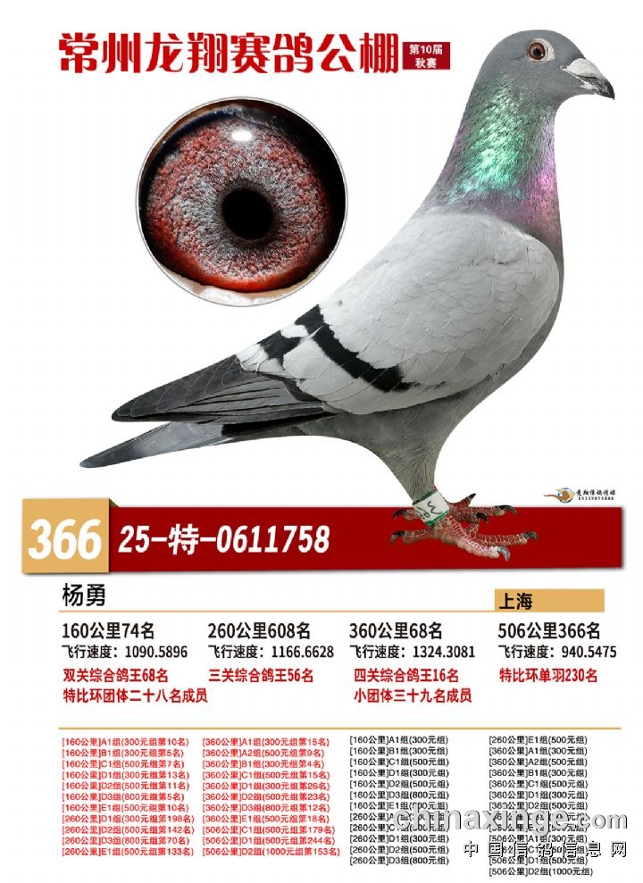 常州龙翔:2025年决赛获奖鸽靓照 366-370名
