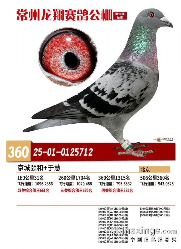 常州龙翔:2025年决赛获奖鸽靓照 356-360名