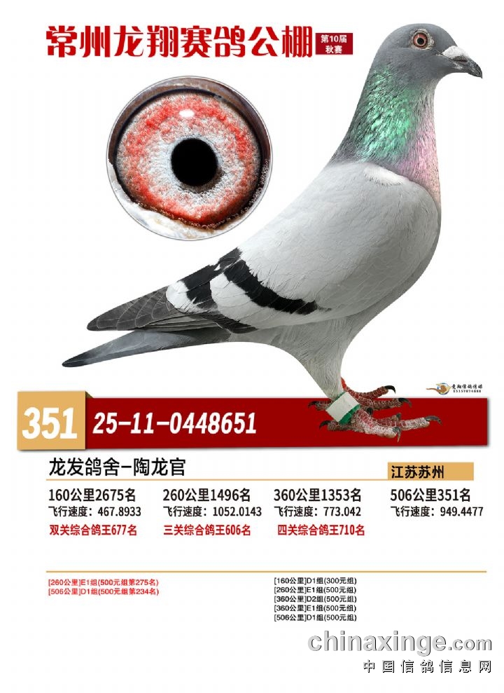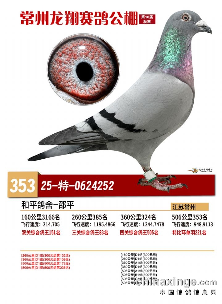 常州龙翔:2025年决赛获奖鸽靓照 351-355名