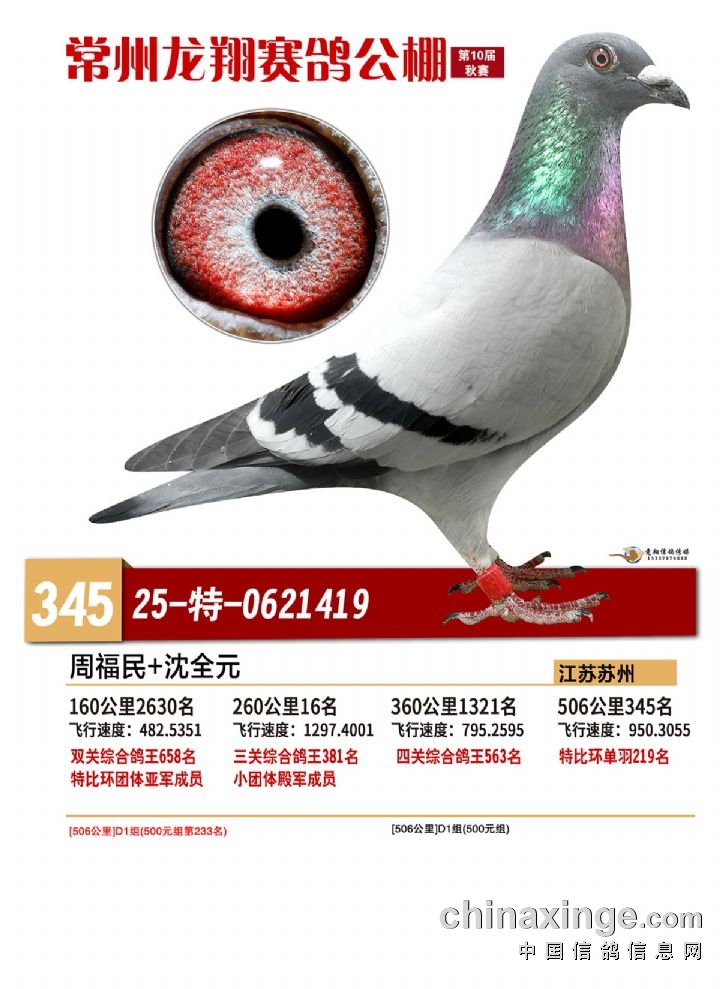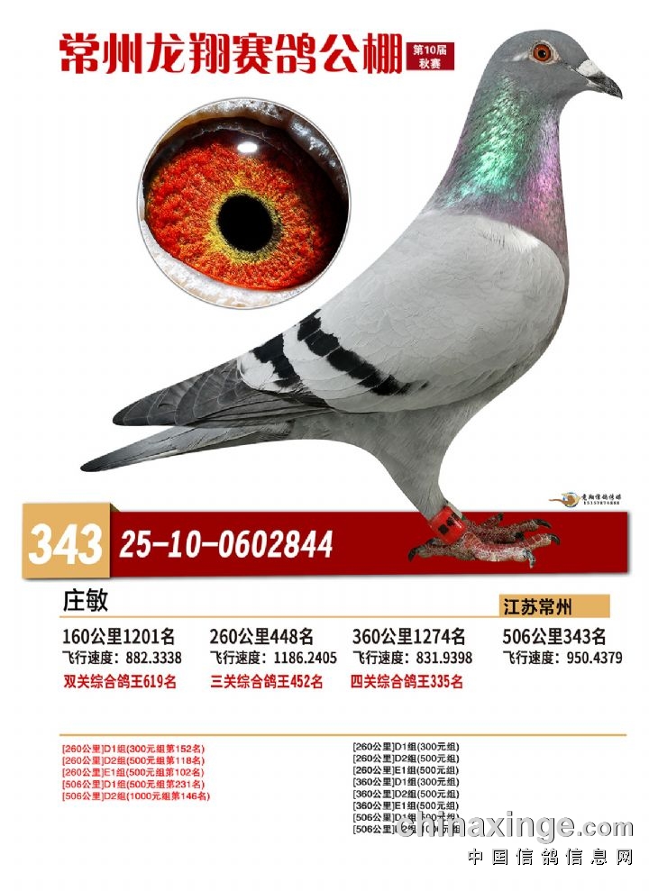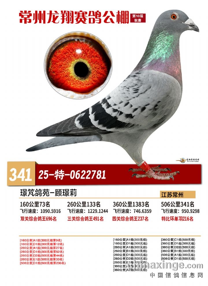 常州龙翔:2025年决赛获奖鸽靓照 341-345名