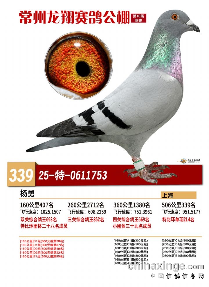 常州龙翔:2025年决赛获奖鸽靓照 336-340名