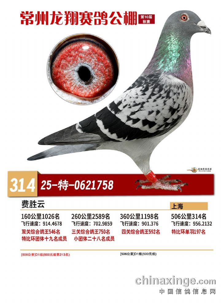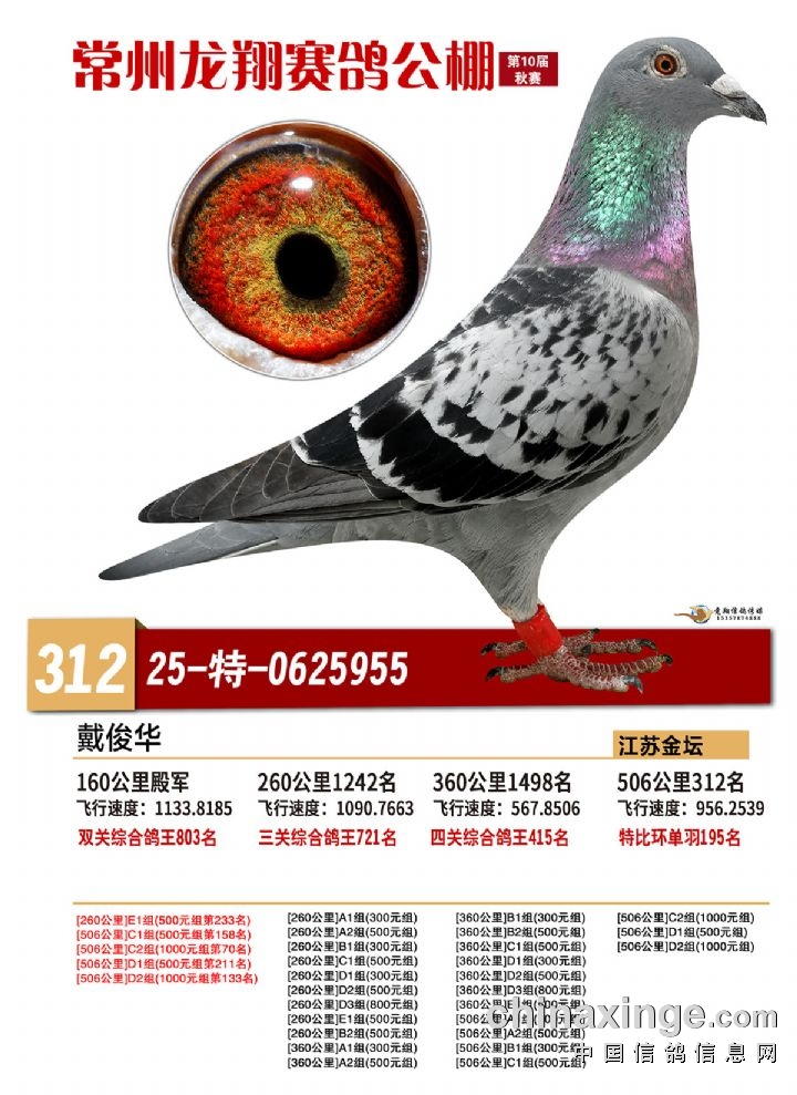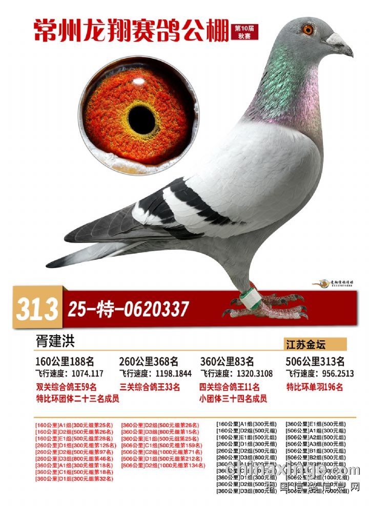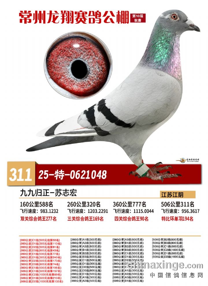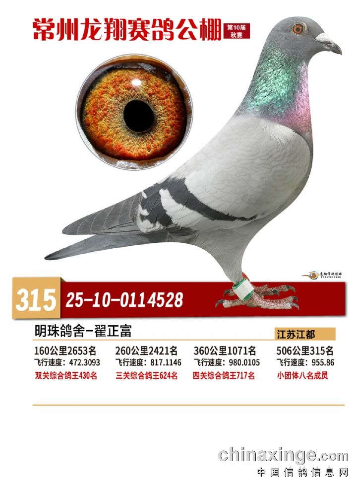 常州龙翔:2025年决赛获奖鸽靓照 311-315名