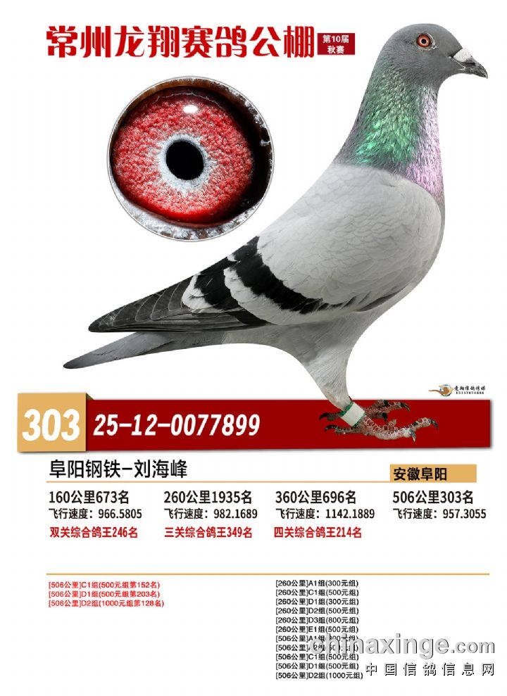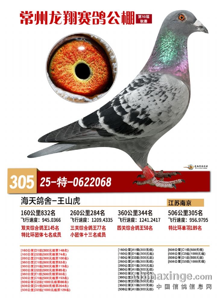 常州龙翔:2025年决赛获奖鸽靓照 301-305名