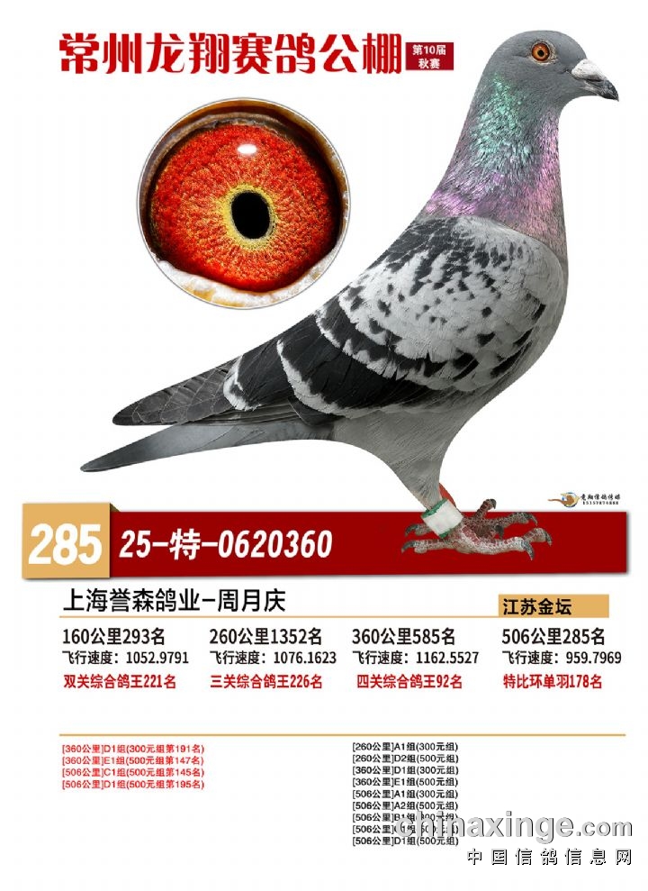 常州龙翔:2025年决赛获奖鸽靓照 281-285名