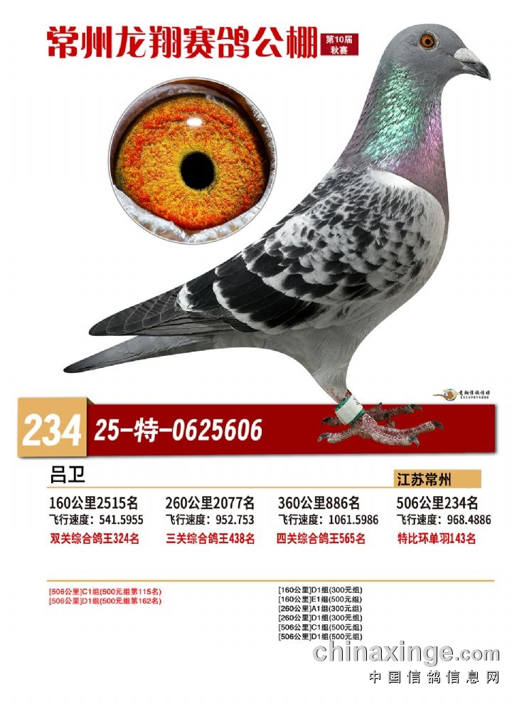 常州龙翔:2025年决赛获奖鸽靓照 231-235名