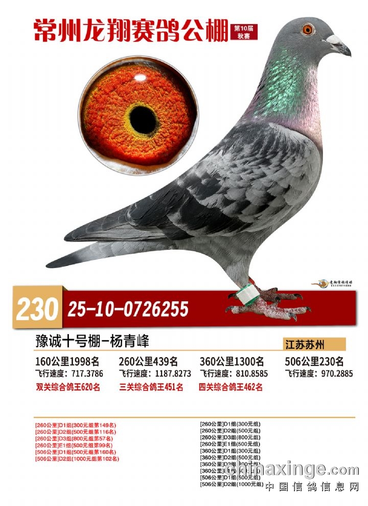 常州龙翔:2025年决赛获奖鸽靓照 226-230名