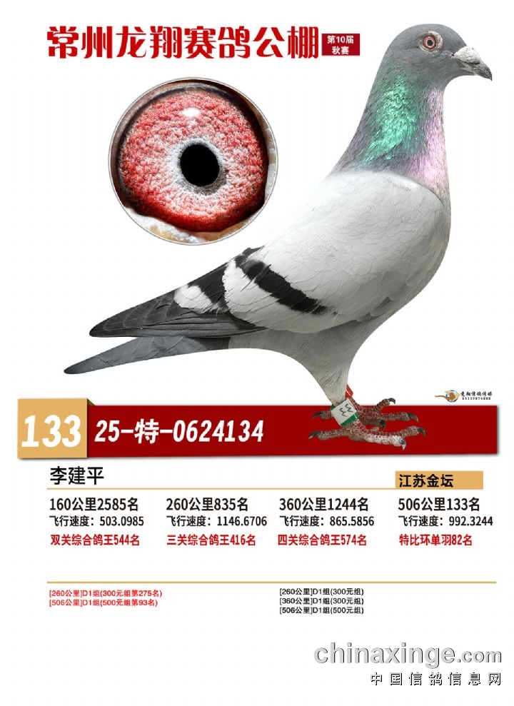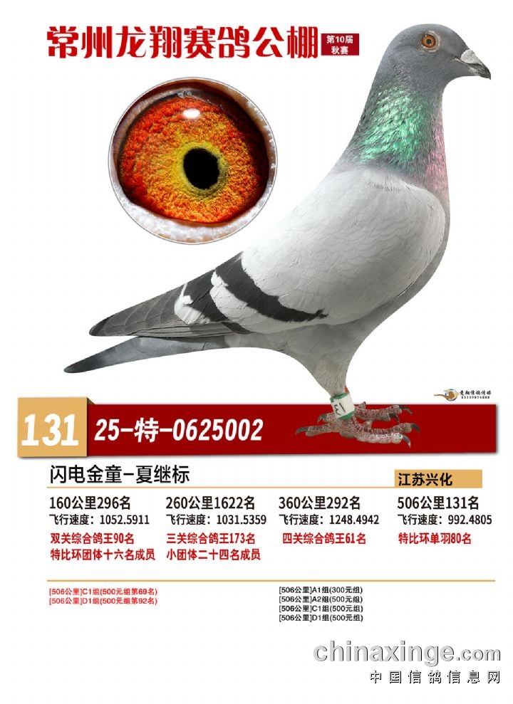 常州龙翔:2025年决赛获奖鸽靓照 131-135名