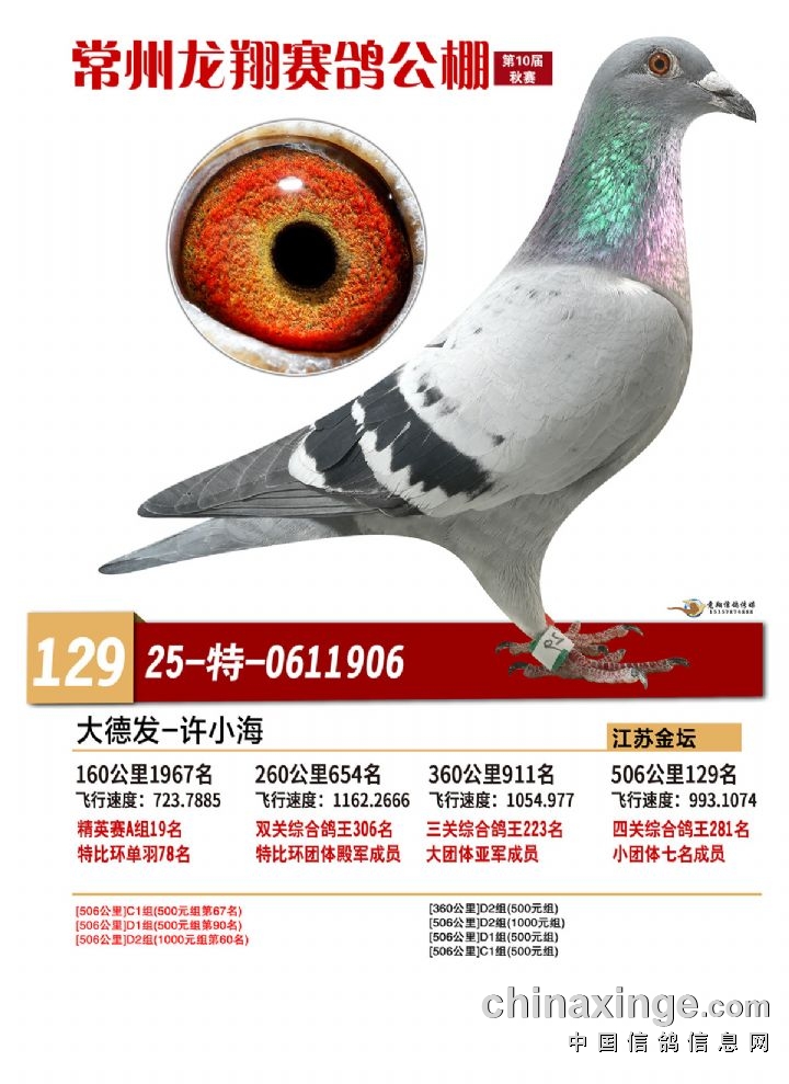 常州龙翔:2025年决赛获奖鸽靓照 126-130名