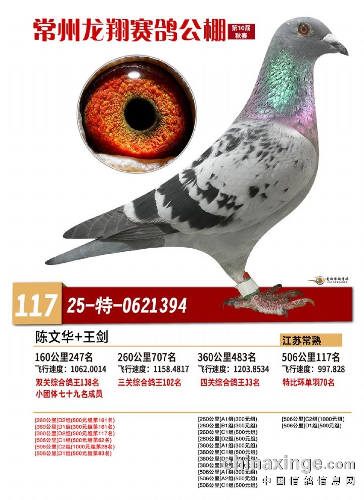 常州龙翔:2025年决赛获奖鸽靓照 116-120名