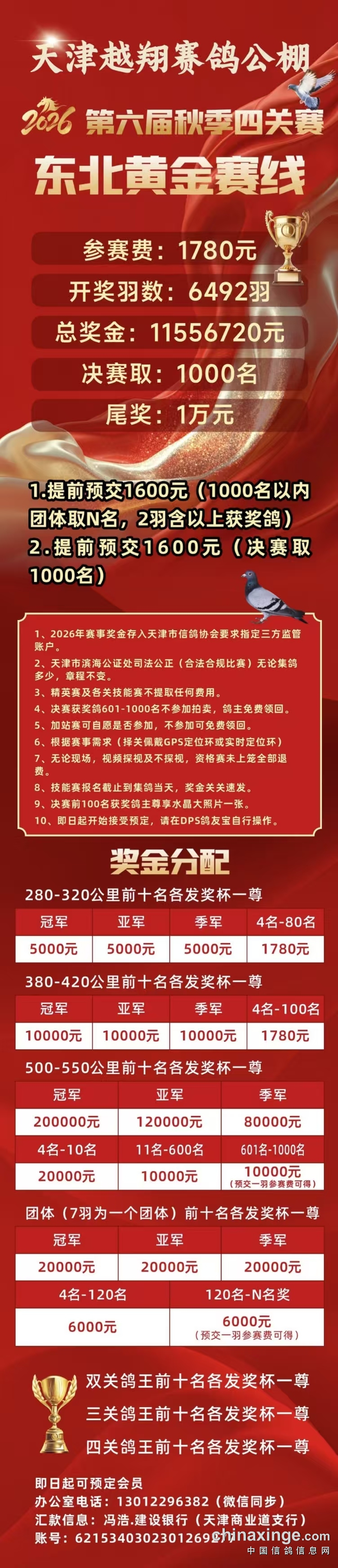 天津越翔赛鸽公棚2026年第六届秋季四关赛章程初稿