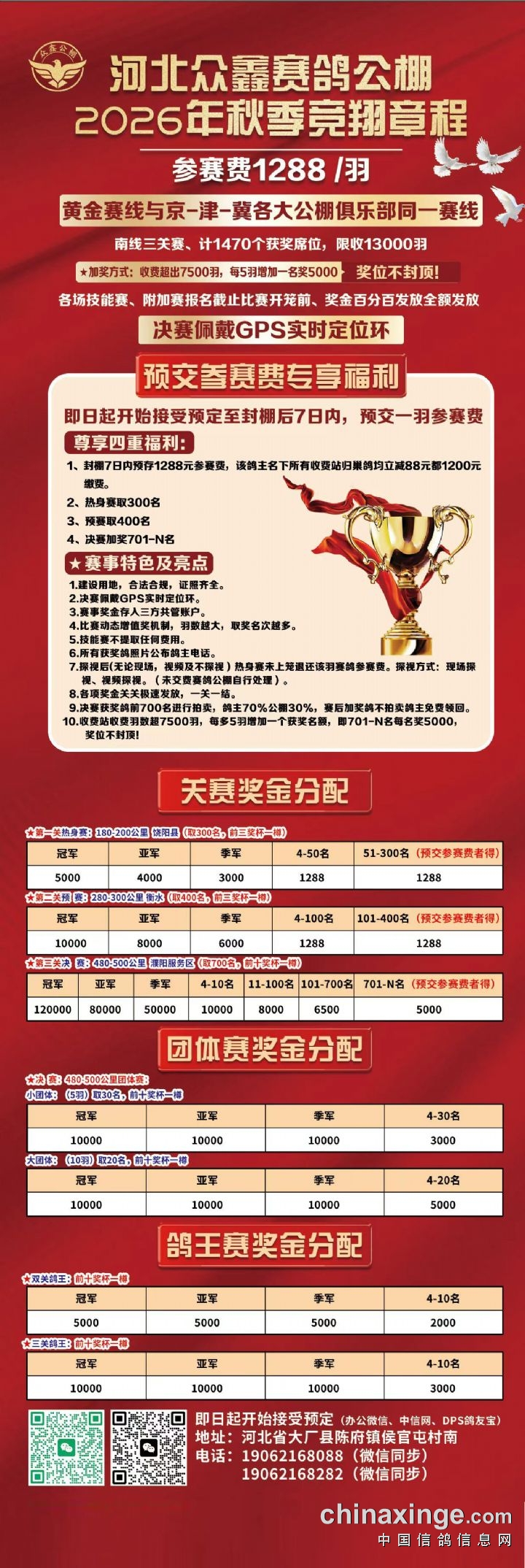 河北众鑫赛鸽公棚2026首届秋赛竞翔章程(简章)