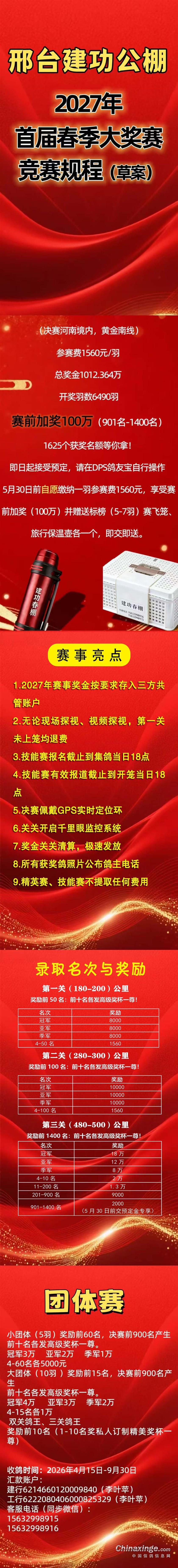 邢台建功赛鸽公棚2027年首届春季大奖赛竞赛规程(草案)