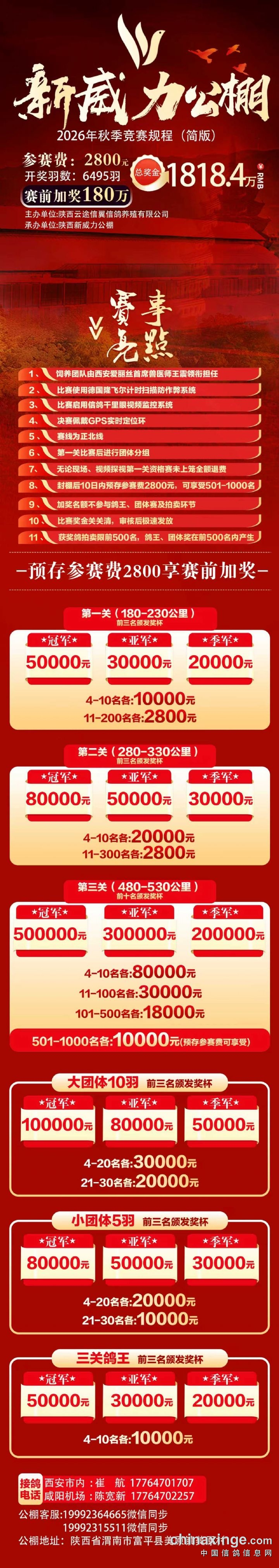 陕西新威力公棚2026年赛鸽入棚资料(更新中···)