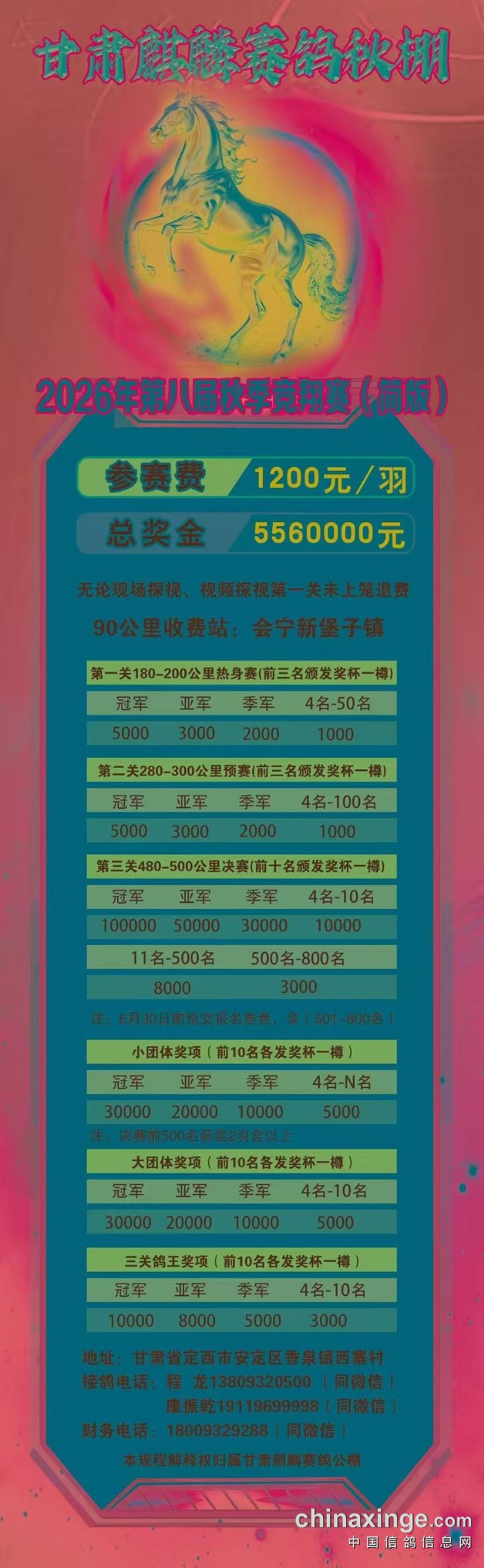 甘肃麒麟秋棚2026年第八届竞翔规程(简版)