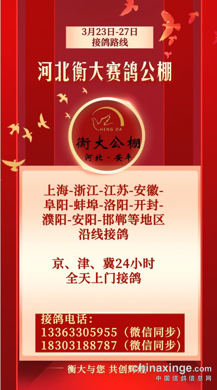 河北衡大:3月22日接鸽路线