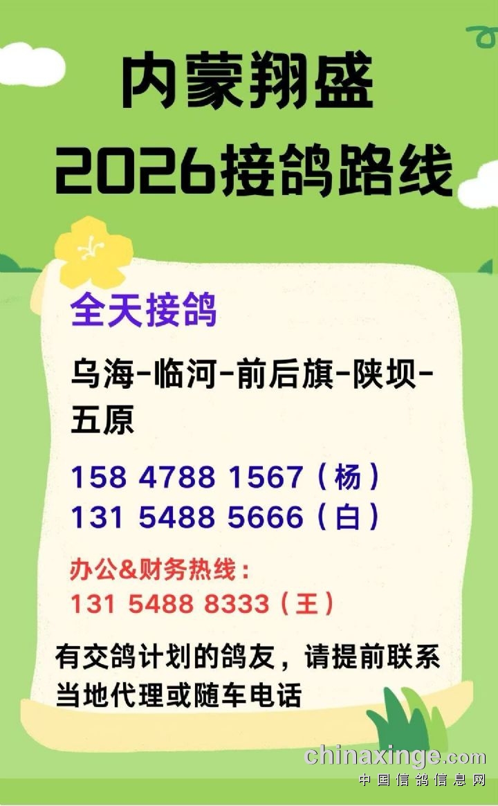 内蒙古翔盛赛鸽公棚2026年收鸽明细---不断更新中